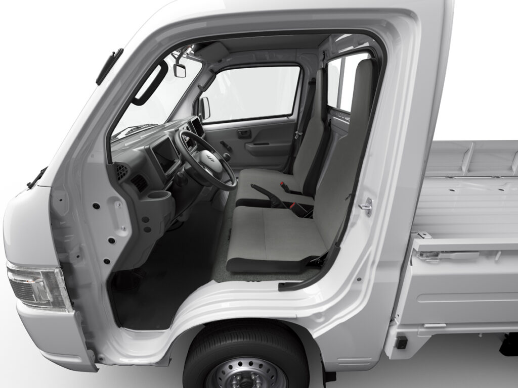 One of the great advantages of Carry’s full cab layout is the short wheelbase. The ramp breakover angle offers plenty of clearance over obstacles and bumpy roads.