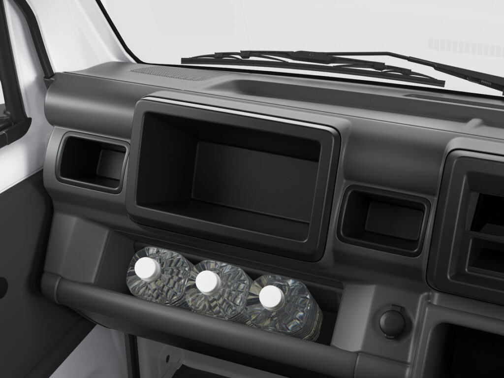 With a length of 2,565 mm and a width of 1,660 mm, Carry’s large-size bed makes it easy to haul long objects as well as wide ones. And with a height of 1,160 mm to the top of the cab, even tall cargo fits on the bed.